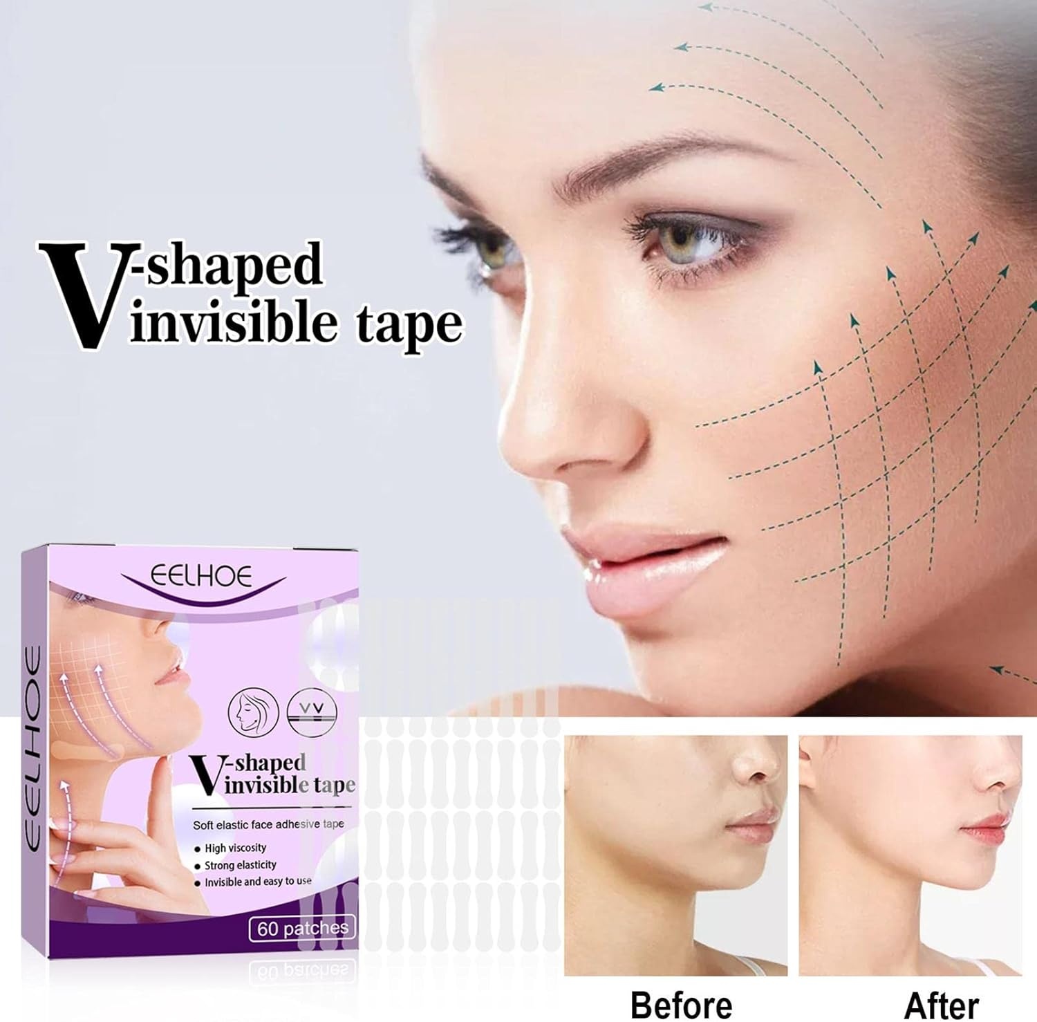 ویژگیها: شفاف، نامرئی، نصب آسان، بدون درد، چسبندگی قوی، مناسب برای لیفت صورت، فک، شقیقه و غبغب 🛡️